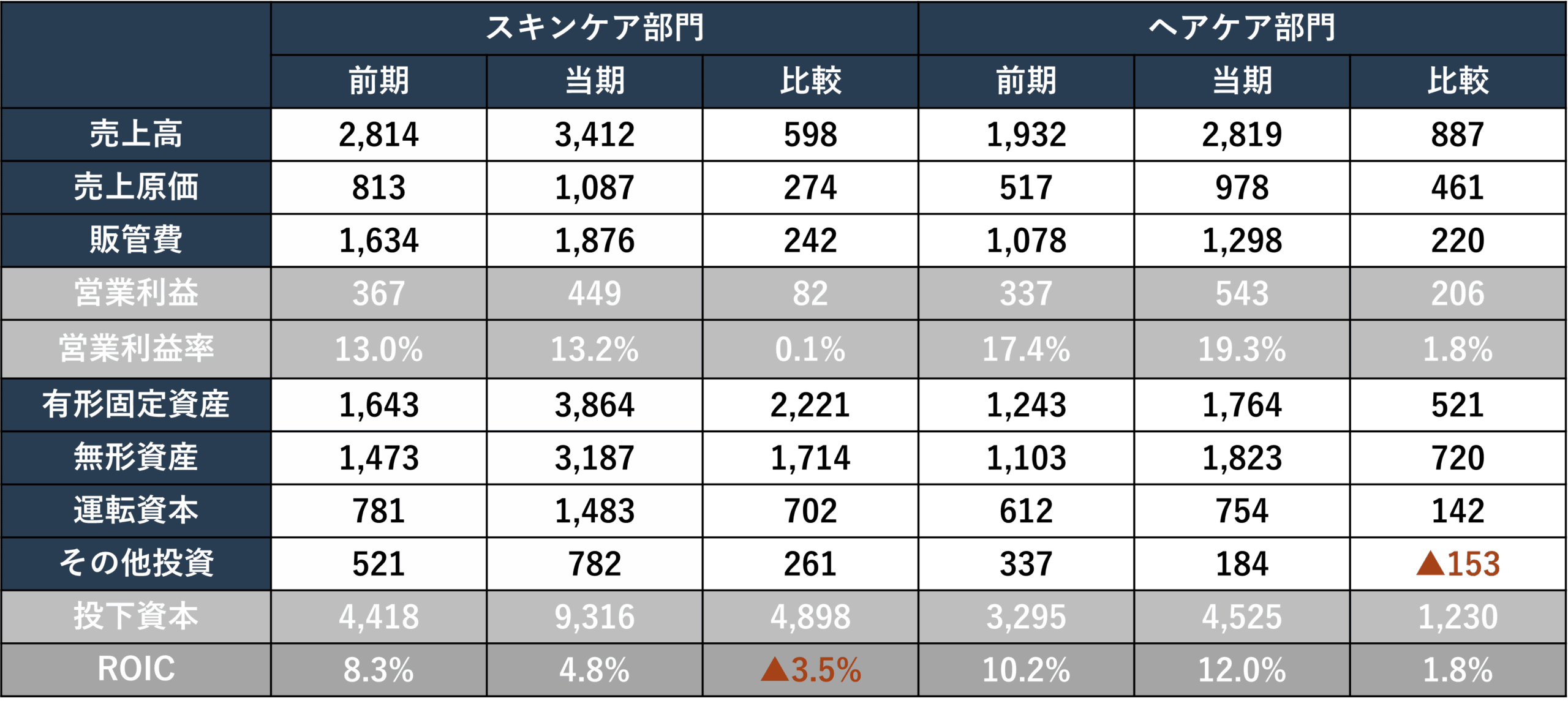 ・今年度のROICは前年度比3.5%低下している