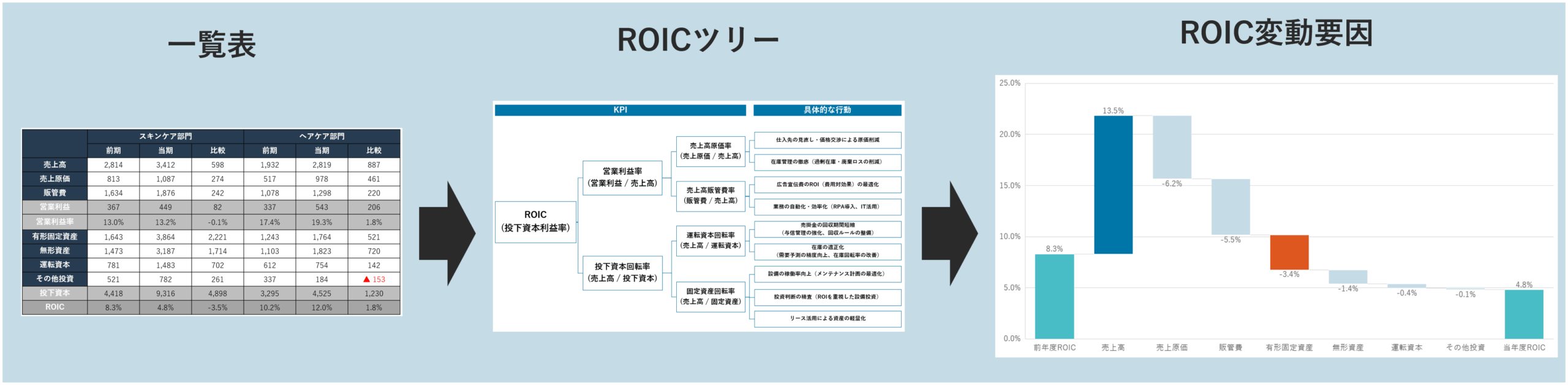 しかし複数部門の活動が集約されているため、各部門の活動がどのようにROIC改善に寄与しているのか分かりづらくなるという側面もあります。