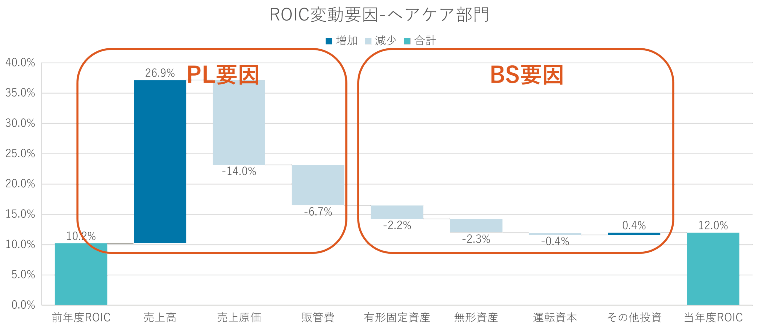 ・有形固定資産・無形資産の増加が、ROICを押し下げる要因に